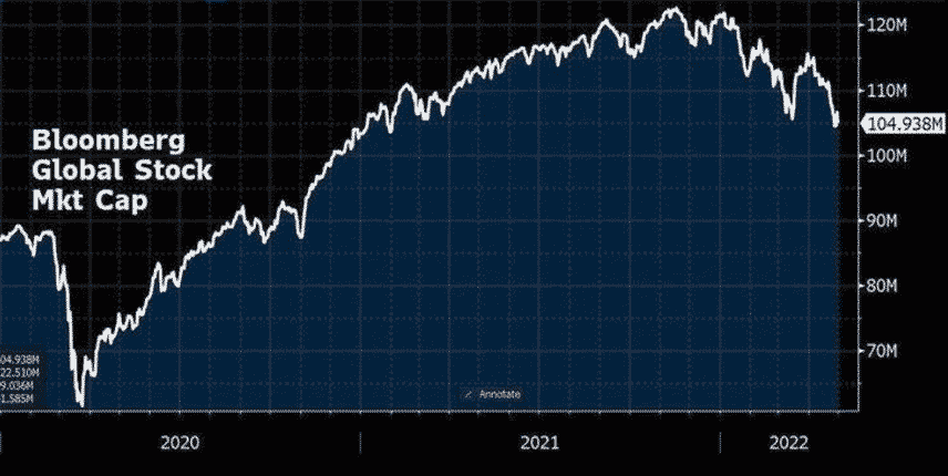 Par ailleurs, 8 000 milliards de dollars sont également sortis du marché de la dette mondiale depuis le dernier ATH. Et nous n’avons probablement encore rien vu étant donné que la Fed vient tout juste de commencer à remonter les taux.