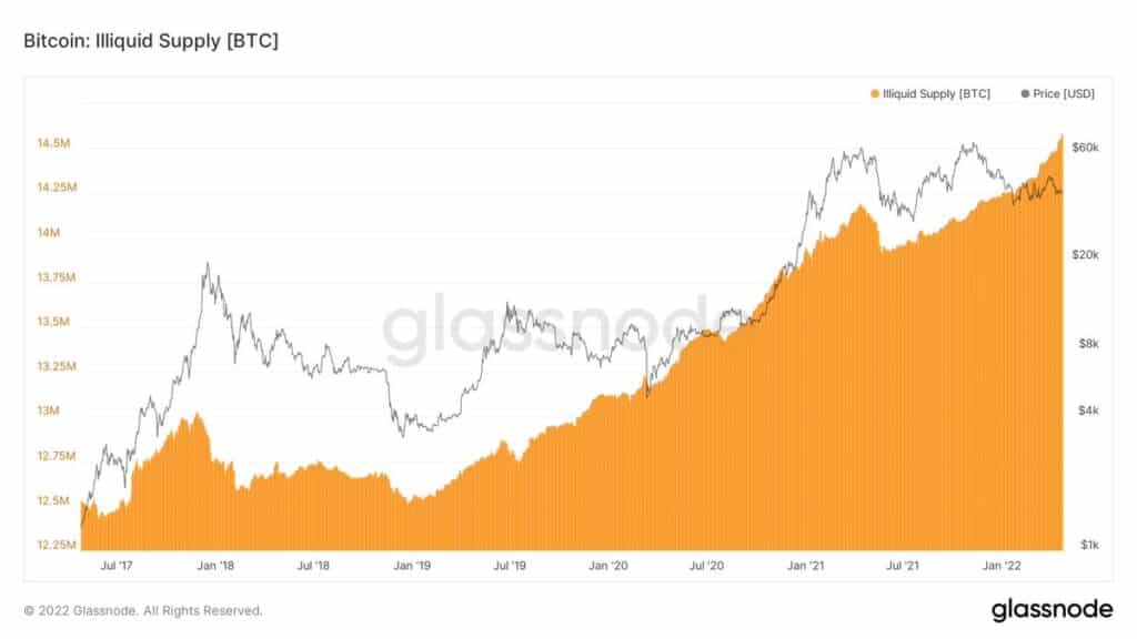 Une autre métrique intéressante sur le graphique suivant (en rose) montre le prix d’achat moyen des BTC dépensés par les LTH. Il monte rapidement et se trouve au même niveau que le prix spot, ce qui démontre que la promotion de 2021 a perdu patience et qu’elle vend :