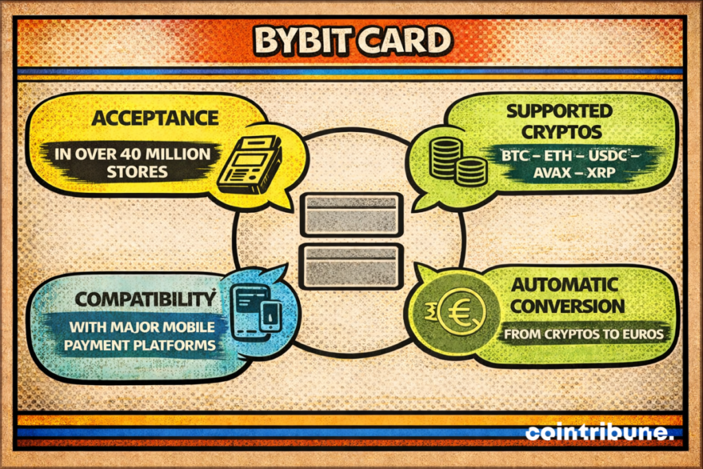 In 2026, the Bybit card has established itself as an essential option for cryptocurrency users wishing to integrate their digital assets into everyday spending. Compatible with the Mastercard network, it allows payments online or in-store with great ease, while offering an attractive cashback program that can reach 10%. This combination of ergonomics, security, and rewards makes it an interesting solution, especially for users based in Europe. While the cashback promise draws attention, several aspects of this crypto exchange Bybit offer deserve exploration: how the rewards program actually works, what additional benefits are linked to VIP status, which cryptocurrencies are supported, and how this card compares with competitors on the market. This guide offers a comprehensive analysis of the Bybit card in 2026, focusing on its practical usefulness, concrete advantages, and key points to know before adopting it.