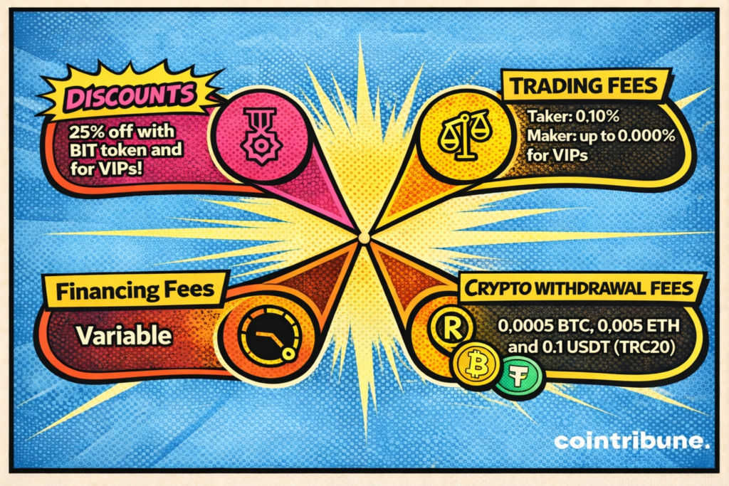 By paying your fees with the native BIT token, you can benefit from a discount of up to 25%. This option is simply activated in the trading settings. It allows cost optimization without significantly changing your strategy.