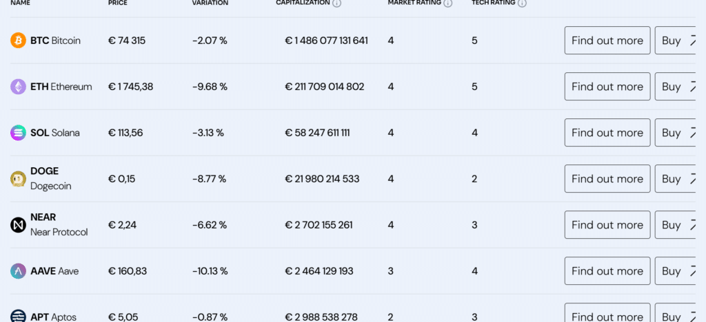 Coinhouse offers a selection of cryptocurrencies including bitcoin, ethereum, litecoin and other popular assets. This variety allows investors to diversify their portfolio while having access to reliable and well-established cryptos.