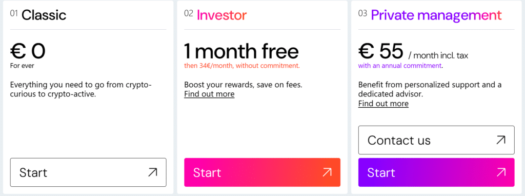 Coinhouse offers subscriptions to access advanced features and benefit from price reductions. Here is an overview of the main plans offered: