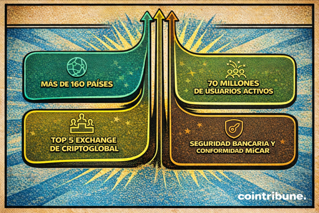 - Volumen de trading diario superando los 70 mil millones de dólares y diversificación de servicios para convertirse en una plataforma cripto completa.