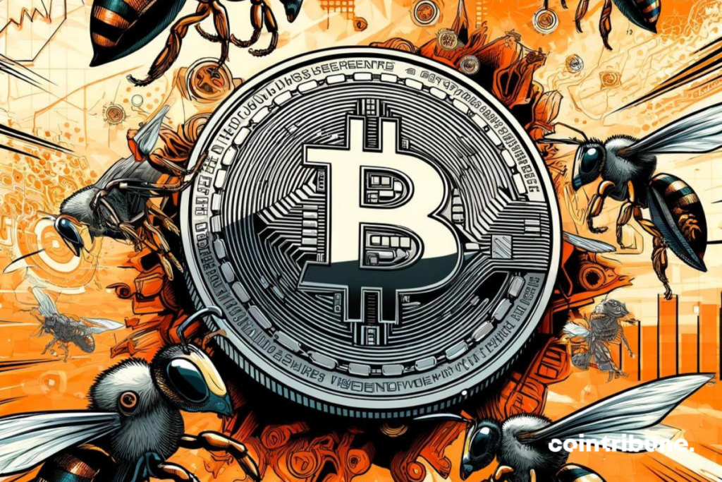 Michael Saylor, co-fondateur de MicroStrategy et fervent défenseur du Bitcoin, a réagi à la baisse soudaine de la crypto sous la barre des 68 000 $. Dans un tweet publié peu après cet événement, Saylor a partagé une image générée par l’IA représentant un Bitcoin physique entouré d’abeilles, avec la légende : « Bitcoin is a Swarm of Cyber Hornets« .