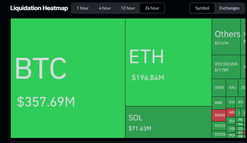 - Les liquidations sur les contrats à terme ont atteint 196 millions de dollars en 24 heures, dont 136 millions provenant de positions longues.
