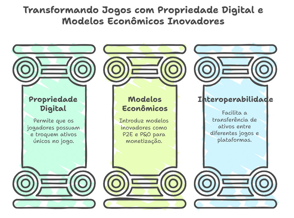 - Definição: tecnologia descentralizada que permite a propriedade real de ativos digitais em jogos eletrônicos.