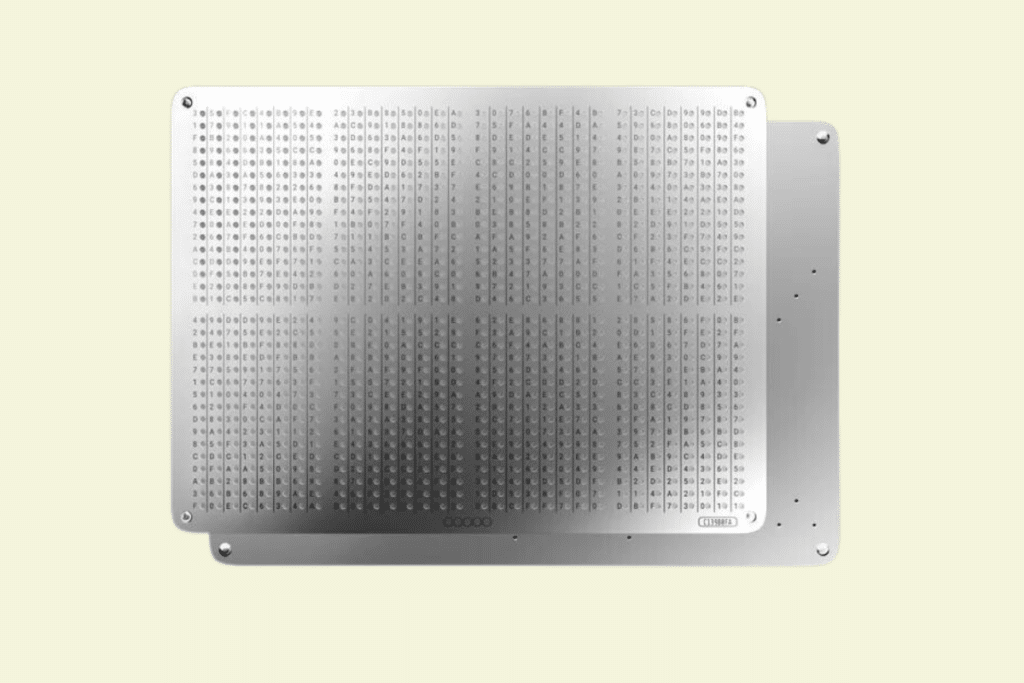 Le processus de gravure est simple, mais efficace. Les utilisateurs reçoivent un kit de gravure qui leur permet de graver leur phrase seed sur les plaques d’acier. Une fois la gravure terminée, les deux plaques sont scellées ensemble dans un boîtier sécurisé. Cela crée une barrière physique supplémentaire contre toute tentative d’accès non autorisé.