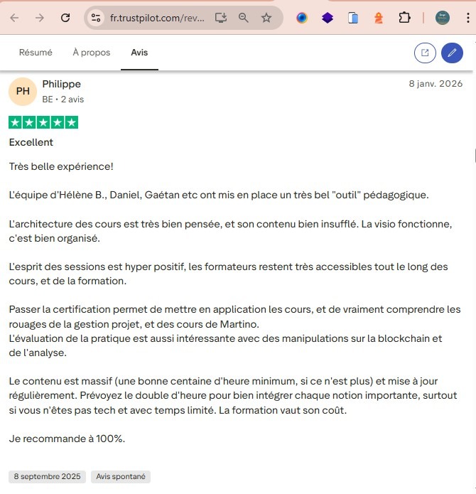 Mais ce n’est pas tout. Les exemples ne se limitent pas au monde de l’entrepreneuriat. En effet, comme vous aurez l’occasion de le constater sur Trustpilot, des dizaines de témoignages illustrent des transformations professionnelles concrètes, souvent inattendues mais toujours cohérentes.